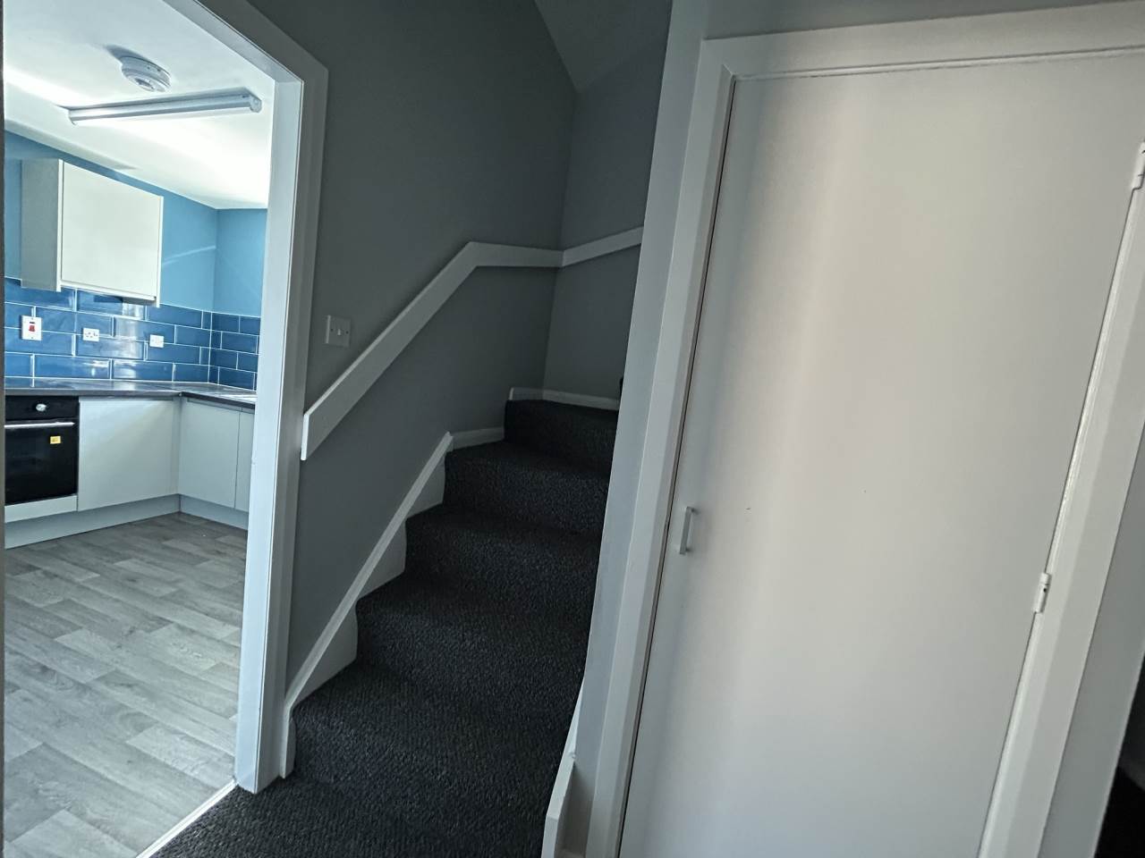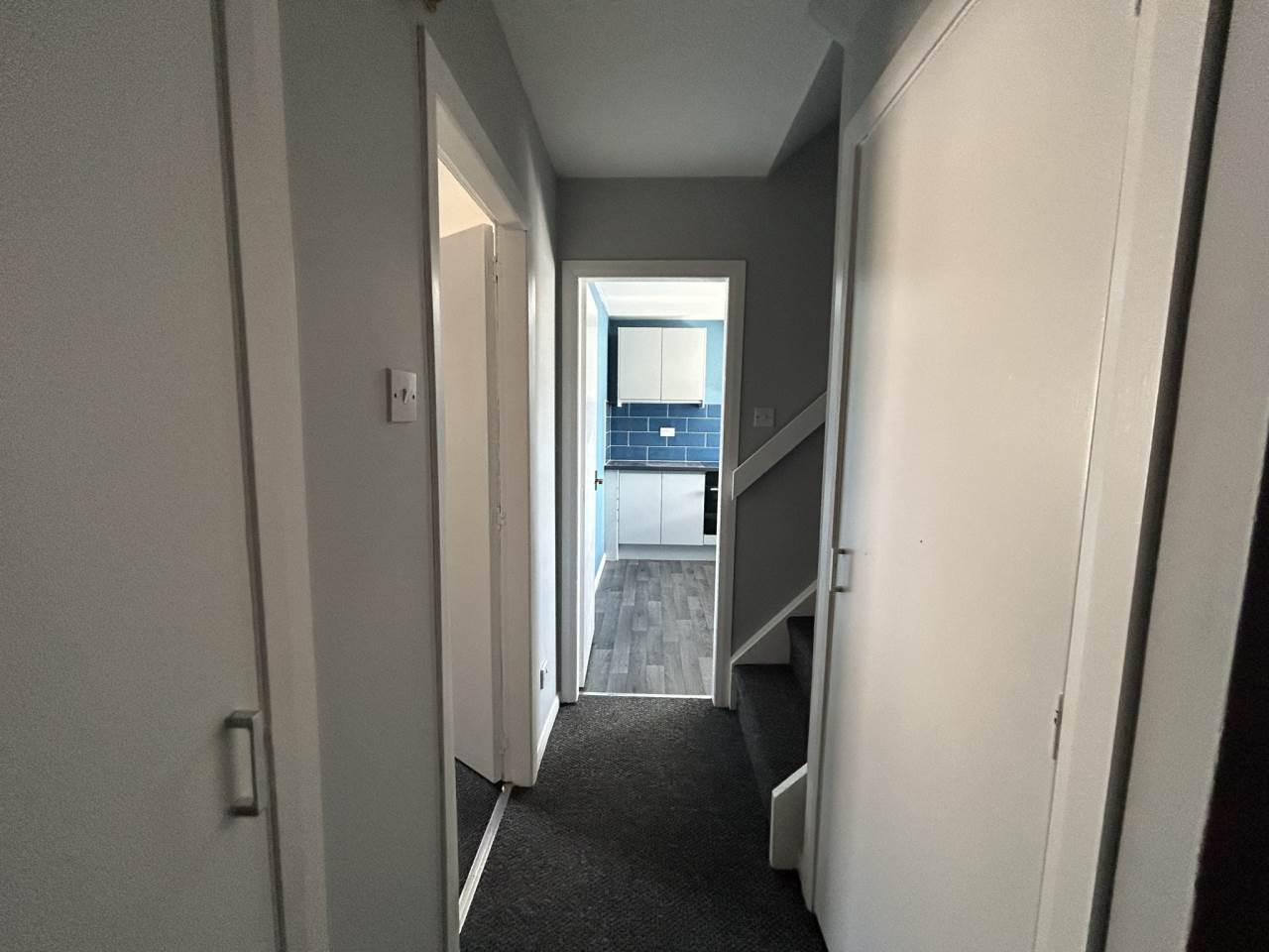 The property compromises neutrally decorated two bedrooms and living room, kitchen with white goods and bathroom.