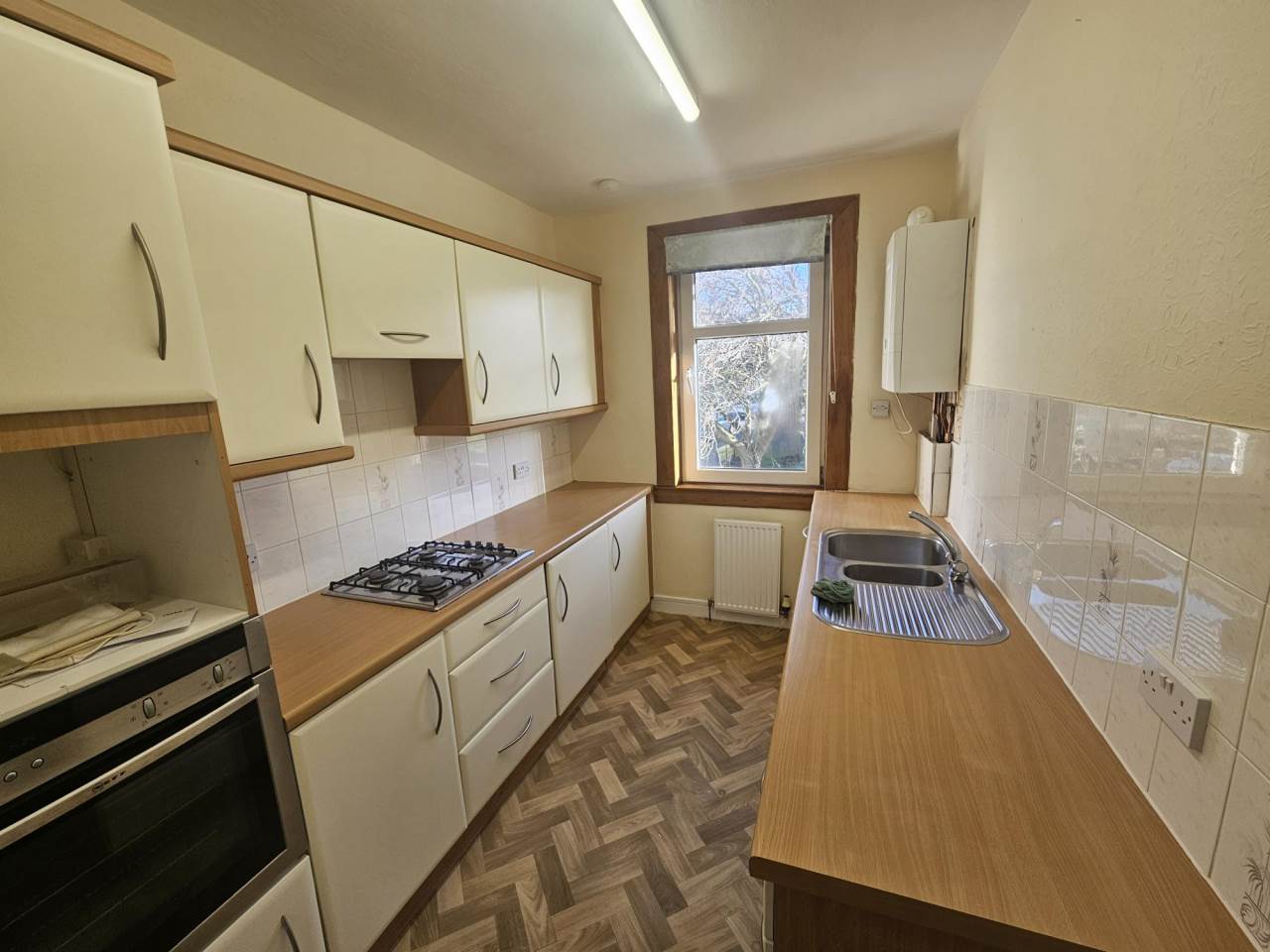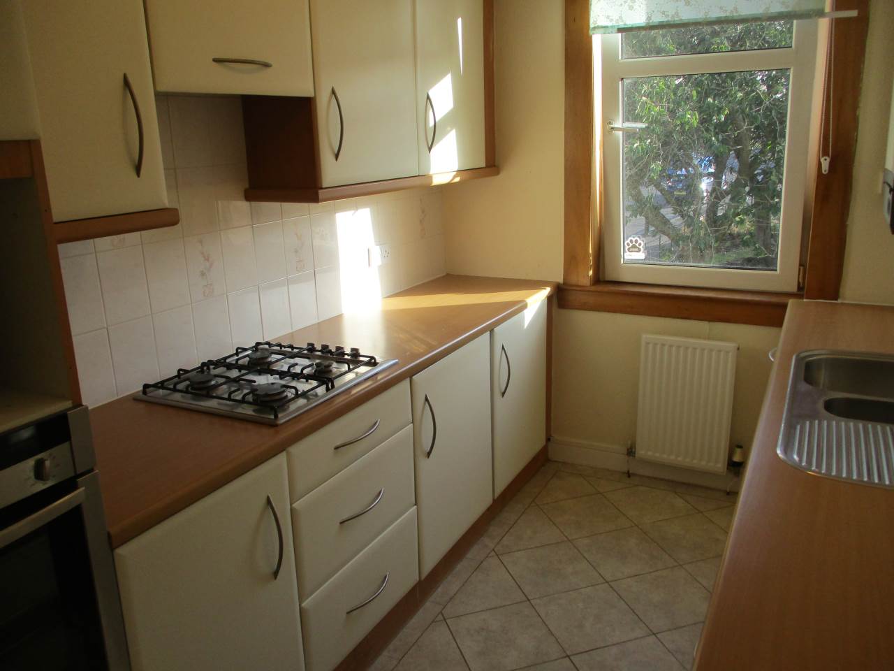 This attractive Second Floor PART FURNISHED Flat is pleasantly located in the Woodside area of Dundee convenient to local amenities with regular public transport to Dundee City Centre. The property is located within a block of similar style apartments that have been recently re-insulated externally. The property comprises a good sized Lounge with double window, a modern fitted Kitchen with a range of wall and base units complete with integrated appliances and a modern Bathroom with 3 piece white suite with a shower over the bath. There are also 2 good sized double Bedrooms with Bedroom 1 benefiting from Built In wardrobes. Externally there are well maintained communal gardens to the rear. The property is presented in good decorative condition and benefits from Gas Central Heating and Double Glazing.