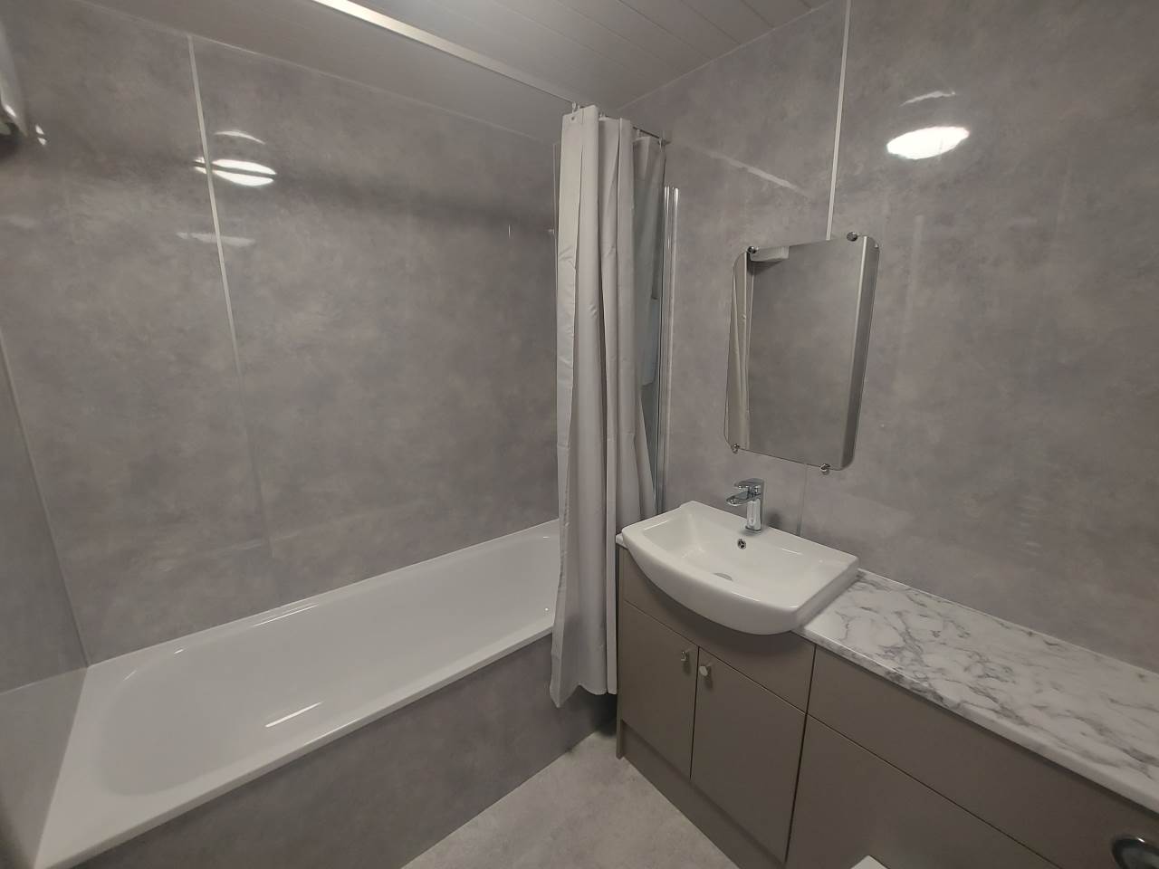 The accommodation comprises a spacious living room, modern fitted kitchen and two double bedrooms. There is a bathroom with shower over bath and a large internal storage cupboard. Recent refurbishment works include updated décor and fixtures in key areas of the property.